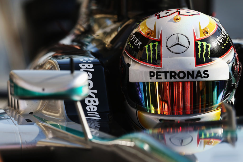 SAKHIR, BAHRAIN – APRIL 05: Lewis Hamilton of Great Britain and Mercedes GP prepares to drive during the final practice session prior to qualifying for the Bahrain Formula One Grand Prix at the Bahrain International Circuit on April 5, 2014 in Sakhir, Bahrain. (Photo by Mark Thompson/Getty Images)